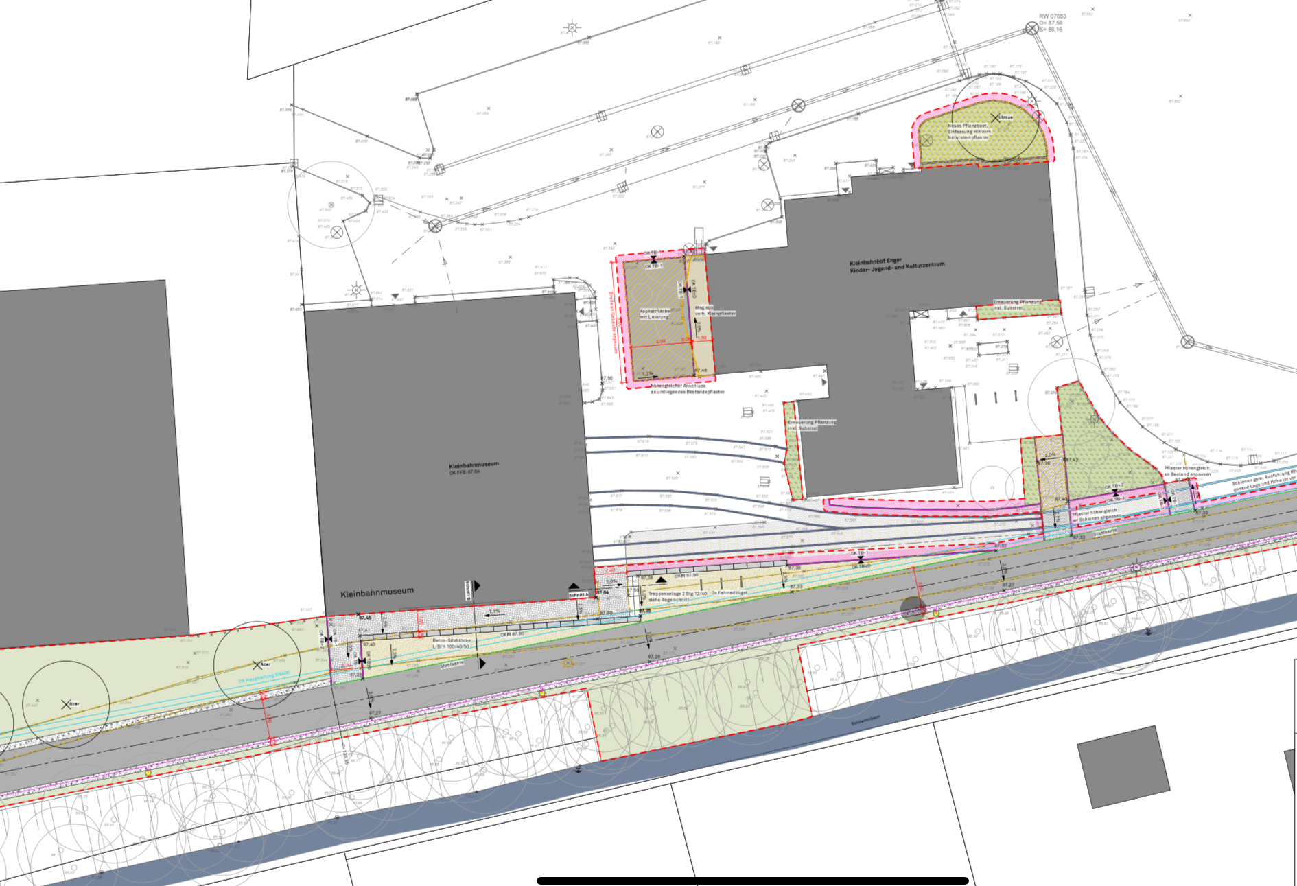 Richtig spannend wird es an der alten Gleisanlage beim Kleinbahnmuseum. Der Verein „Kleinbahnmuseum Enger e.V.“ plant dort die Neuverlegung der historischen Schienen – nicht als Museumsstück, sondern tatsächlich befahrbar. Für FußgängerInnen und RadfahrerInnen wird es dann zwei neue Übergänge geben, die die Verbindung zwischen den Quartieren noch flüssiger machen sollen.