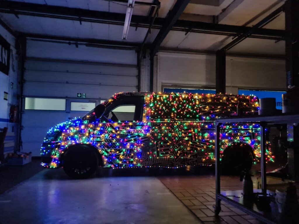 Alles begann im Jahr 2022. Ein Bekannter hatte Lichterketten übrig, und Daniel Beimfohr – Bulli-Fan und Inhaber der spezialisierten Autowerkstatt „Motorvation“ in Bielefeld-Jöllenbeck – erkannte sofort das Potenzial. „Warum nicht den Bulli damit schmücken und ein bisschen Weihnachtsstimmung verbreiten?“, erzählt er. Gesagt, getan: Mit ein paar alten Lichterketten begann das Abenteuer.