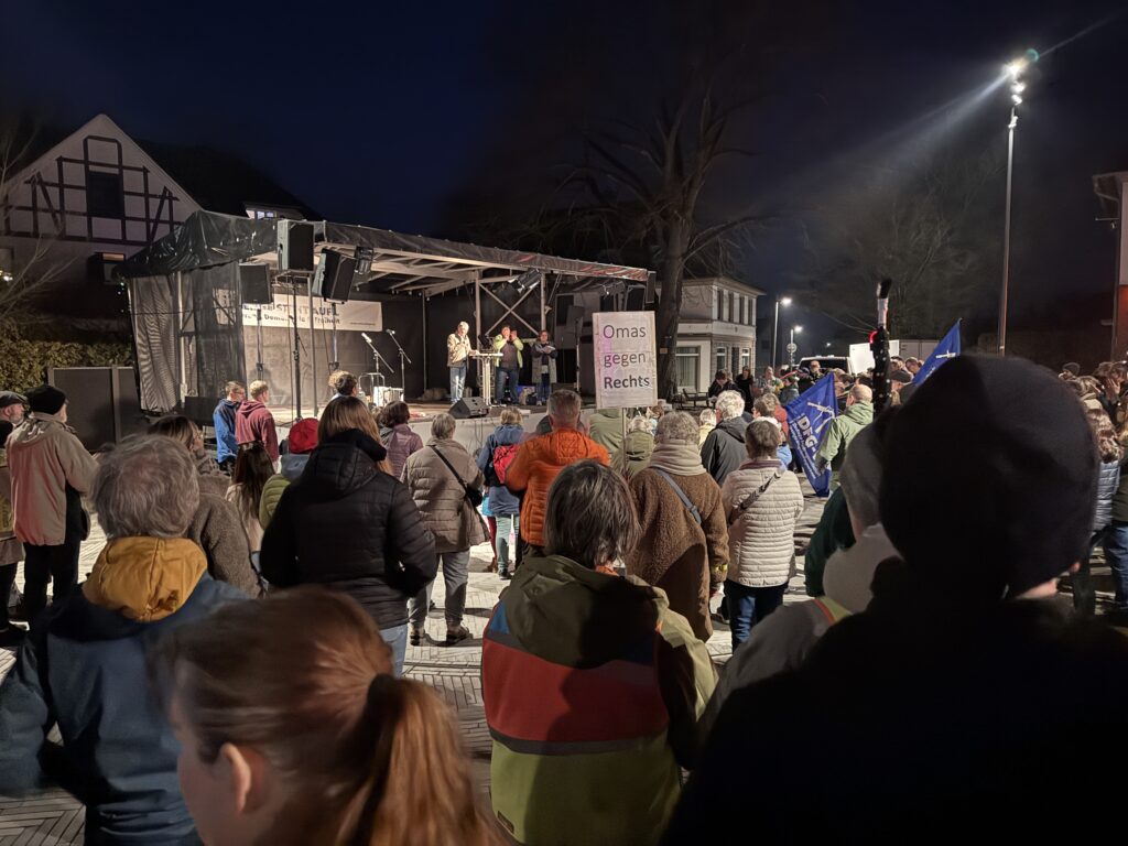 Durch den Abend führen Lisa Kinnius und Nicole Ronellenfitsch vom Bündnis. Die Initiative hatte vor zwei Jahren erstmals zu einer solchen Demonstration in Spenge aufgerufen. Auslöser war damals ein bundesweit diskutiertes Geheimtreffen mit AfD-Beteiligung, bei dem über die Ausweisung von Menschen mit Migrationsgeschichte gesprochen worden sein soll. Die Empörung darüber brachte auch in Spenge Menschen zusammen. Seitdem organisiert das Bündnis immer wieder Aktionen, um für demokratische Werte zu werben.