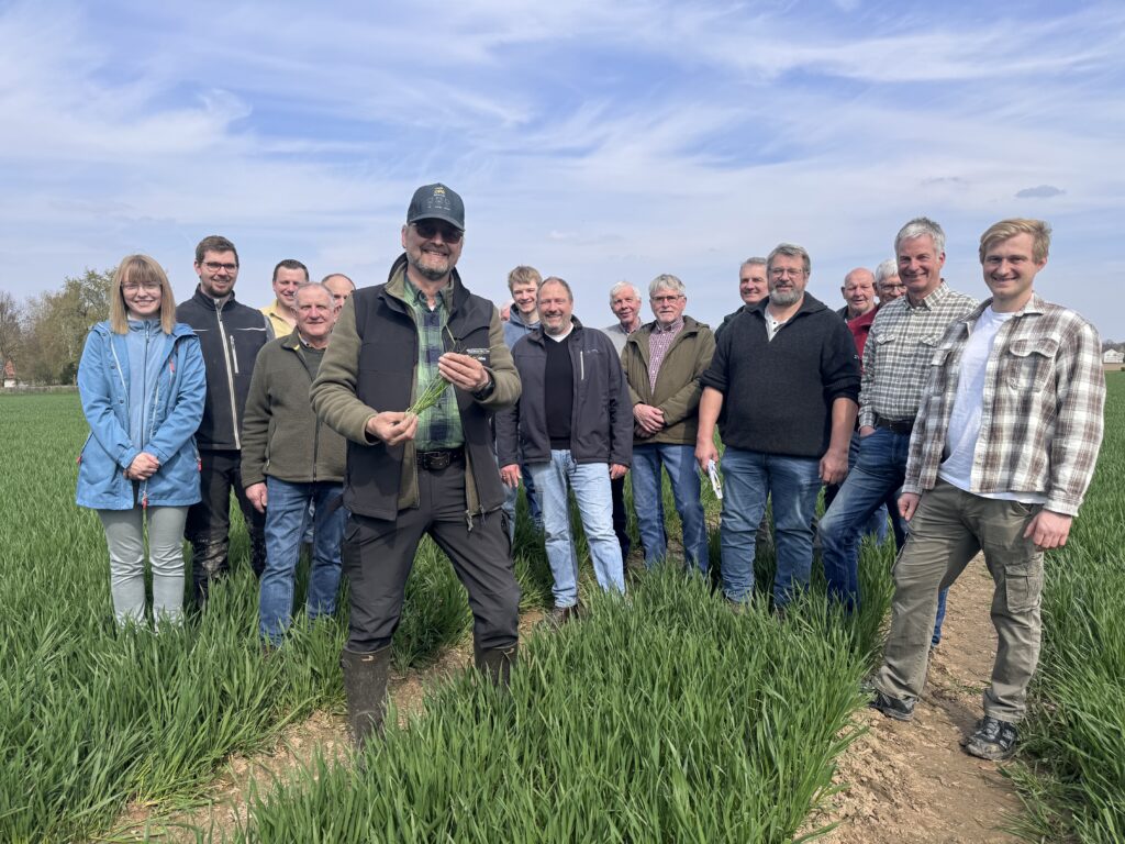 Eine warme Mittagssonne liegt über den Feldern von Besenkamp, der Boden noch kühl, die Luft klar. Zwischen jungen Halmen und ersten grünen Spitzen stehen an diesem Tag Menschen, die genau hinschauen: Rund 15 Landwirte aus Enger und Spenge sind zur gemeinsamen Feldbegehung gekommen – ein Termin, der jedes Jahr stattfindet.