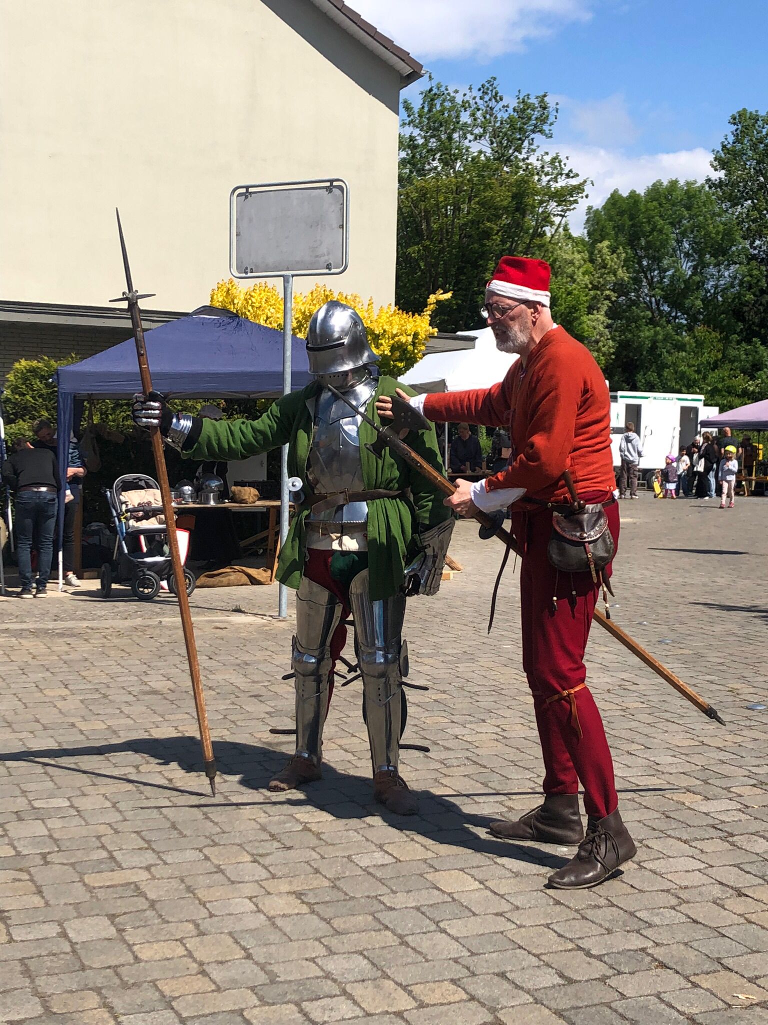 Mitmachstände waren sehr abwechslungsreich. Es gab zum Beispiel einen Stand fürs Filzen, an dem man Bälle filzen konnte. Es gab einen Stand mit Rüstungen, Bögen und Schilden. Man konnte dort sogar eine Ritterrüstung anprobieren. An einem Stand konnte man Schwerter anmalen. An einem weiteren Stand konnte man wie ein mittelalterlicher Schriftsteller mit Feder und Tinte schreiben.
