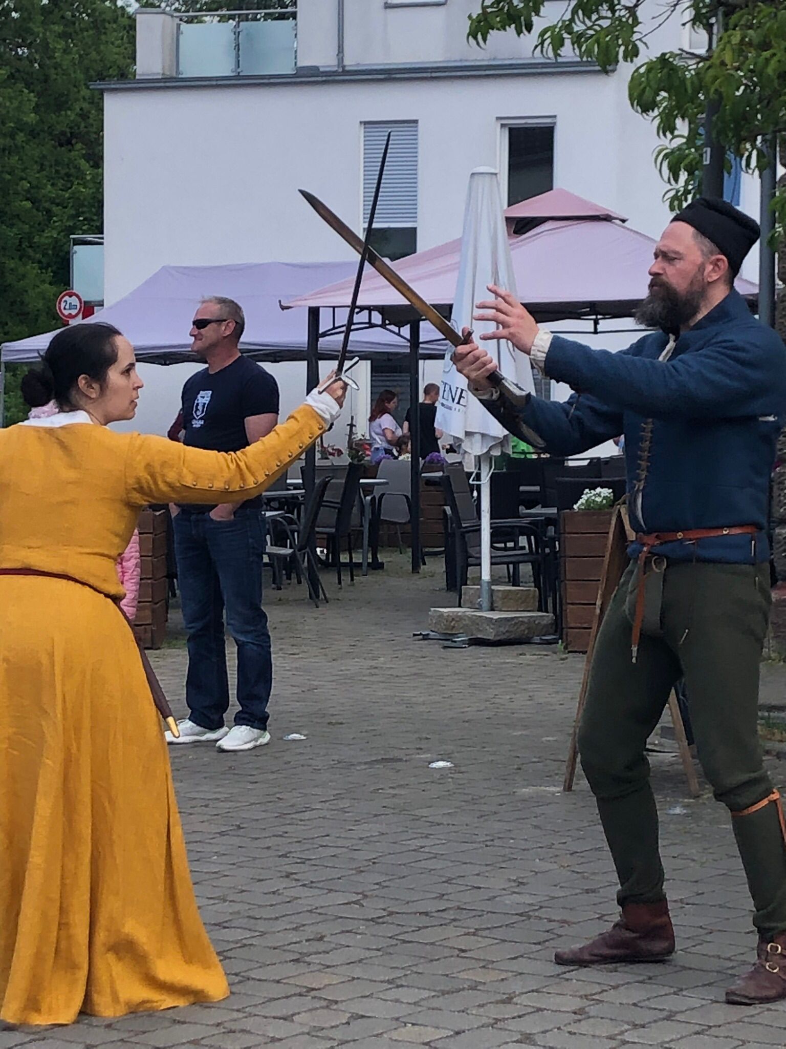 Weitere Highlights gab es auch: Schwertkämpfe und außerdem Tänze, die sie dann in der Mitte vom Fest aufgeführt haben. Generell war immer was los in der Mitte. Es war quasi der Marktplatz.