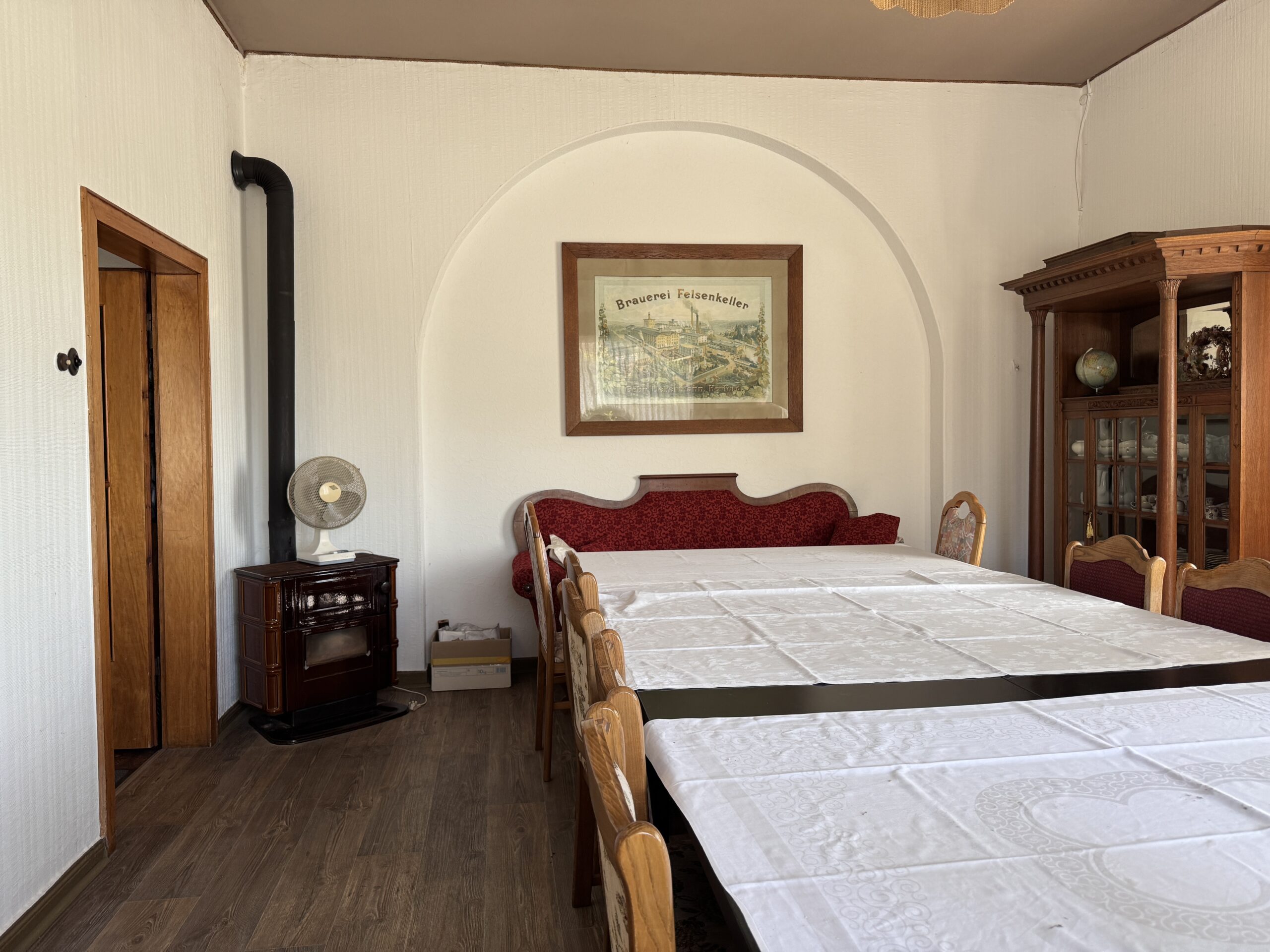 Hier könnte ein neues Kapitel beginnen: ein Hofcafé, ein Ort für Kulturveranstaltungen, vielleicht sogar ein Mehrgenerationenprojekt. Es ist ein Ort mit Charakter, Patina, Seele. Hier kann man etwas bewahren – oder etwas völlig Neues schaffen. Ein Hofcafé? Eine Eventlocation? Eine WG mit Hühnern und Pickertparty am Wochenende? Oder einfach wieder eine Kneipe mit Herz, so wie früher.