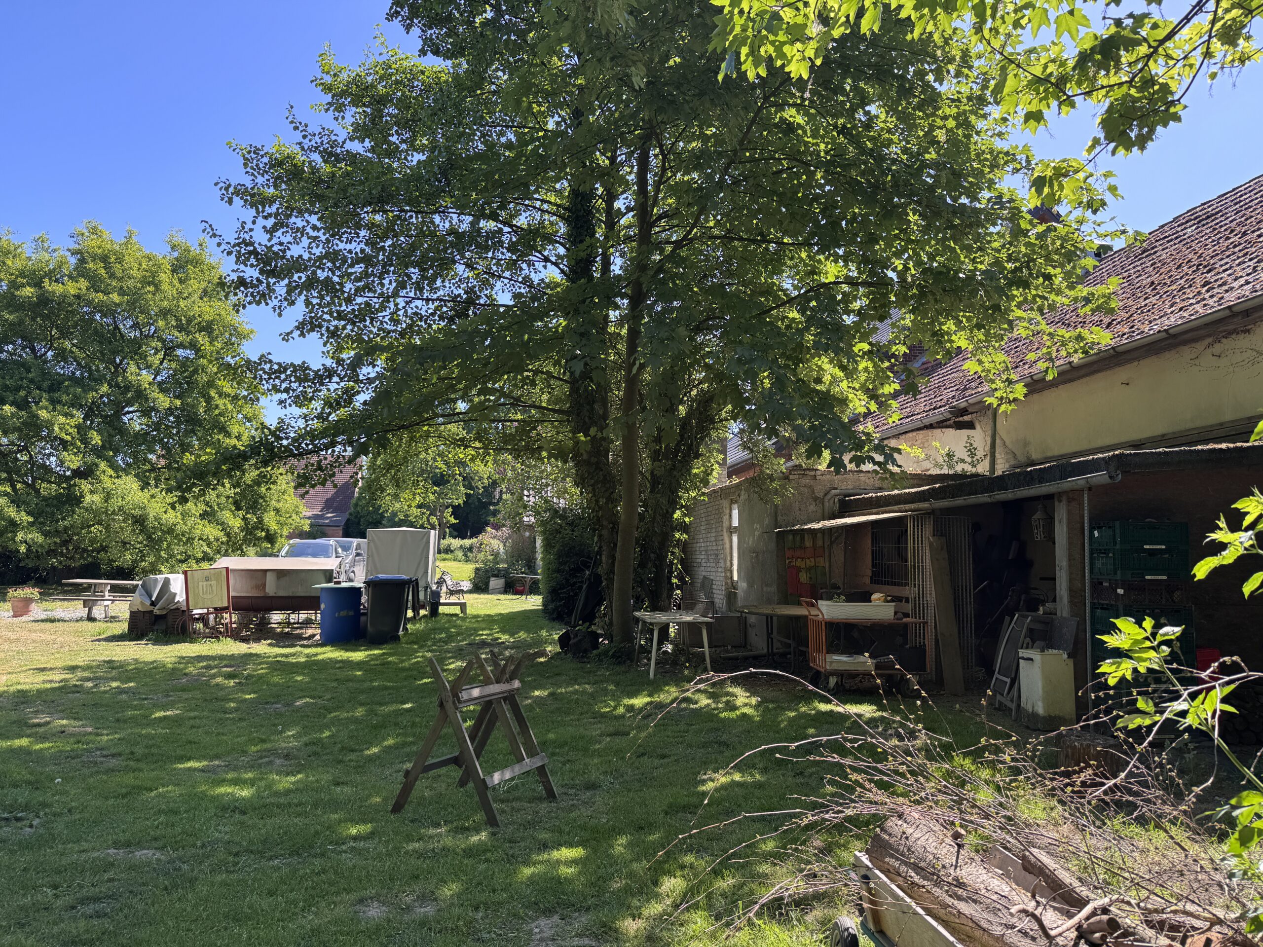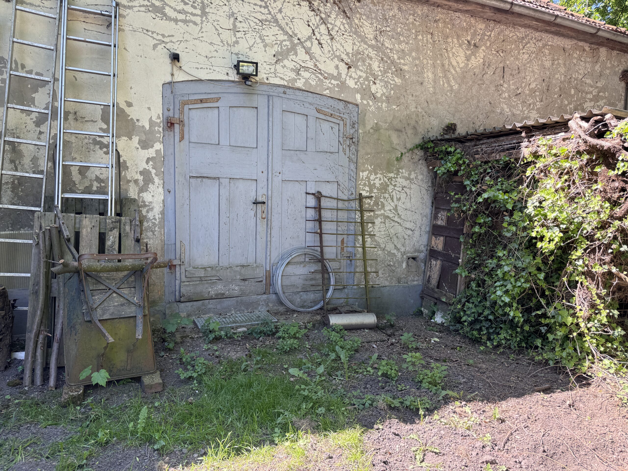 Das Anwesen selbst ist ein Traum für alle, die Ideen haben: Rund 146 m² Wohnfläche, 250 m² Nutzfläche, ein riesiges Grundstück mit über 6.500 m². Dazu Stallungen, Nebengebäude, ein alter Saal, der schon Bühne, Kino und Werkstatt war. Hühner laufen noch frei herum – und die Bäume hat Frank Kenter alle selbst gepflanzt. Ein Ort, der lebt – auch wenn er gerade Pause macht.