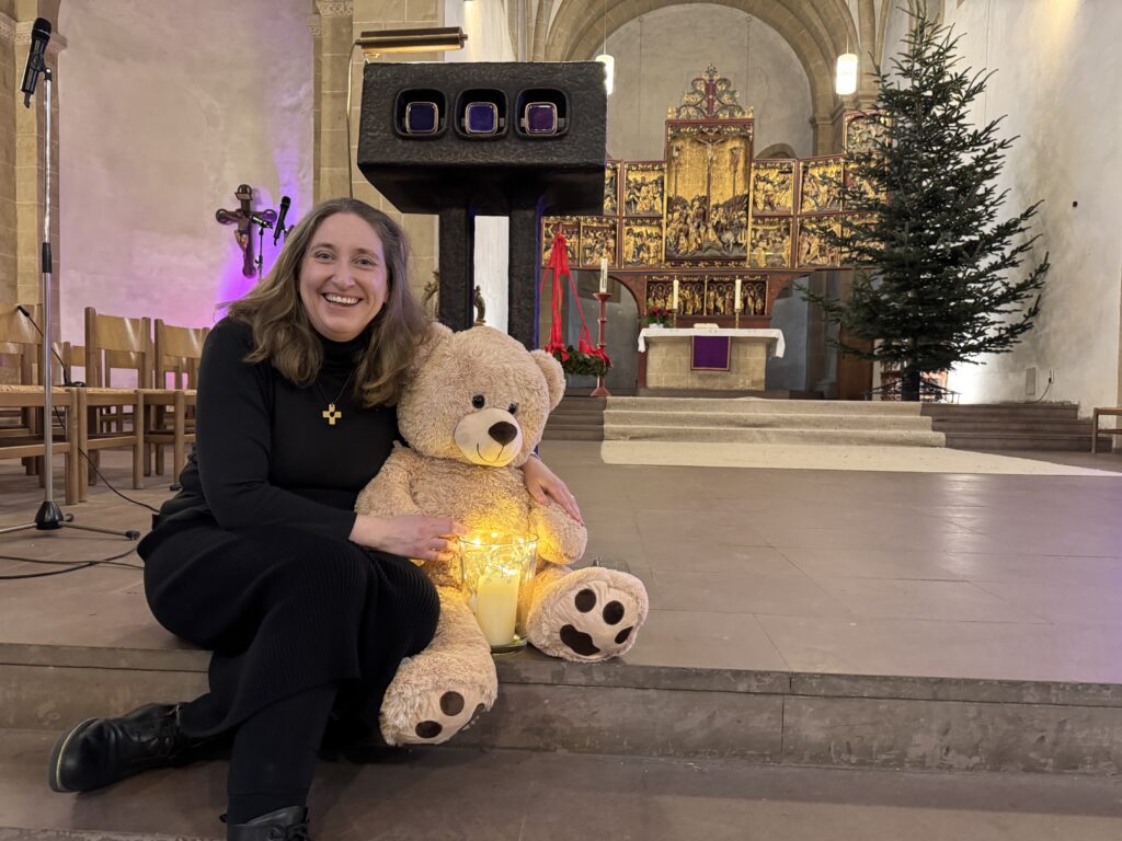 Denn die Pfarrerin ist selbst bekennender Kuscheltier-Fan. Einige ihrer Stoffgefährten begleiten sie bis heute – an Heiligabend wird Teddybär Otto mit dabei sein. Auch ihre Tochter Fritzi liebt Kuscheltiere, am liebsten Hunde. Wer also an diesem Nachmittag denkt, er sei mit seiner Plüschliebe allein: ganz sicher nicht.