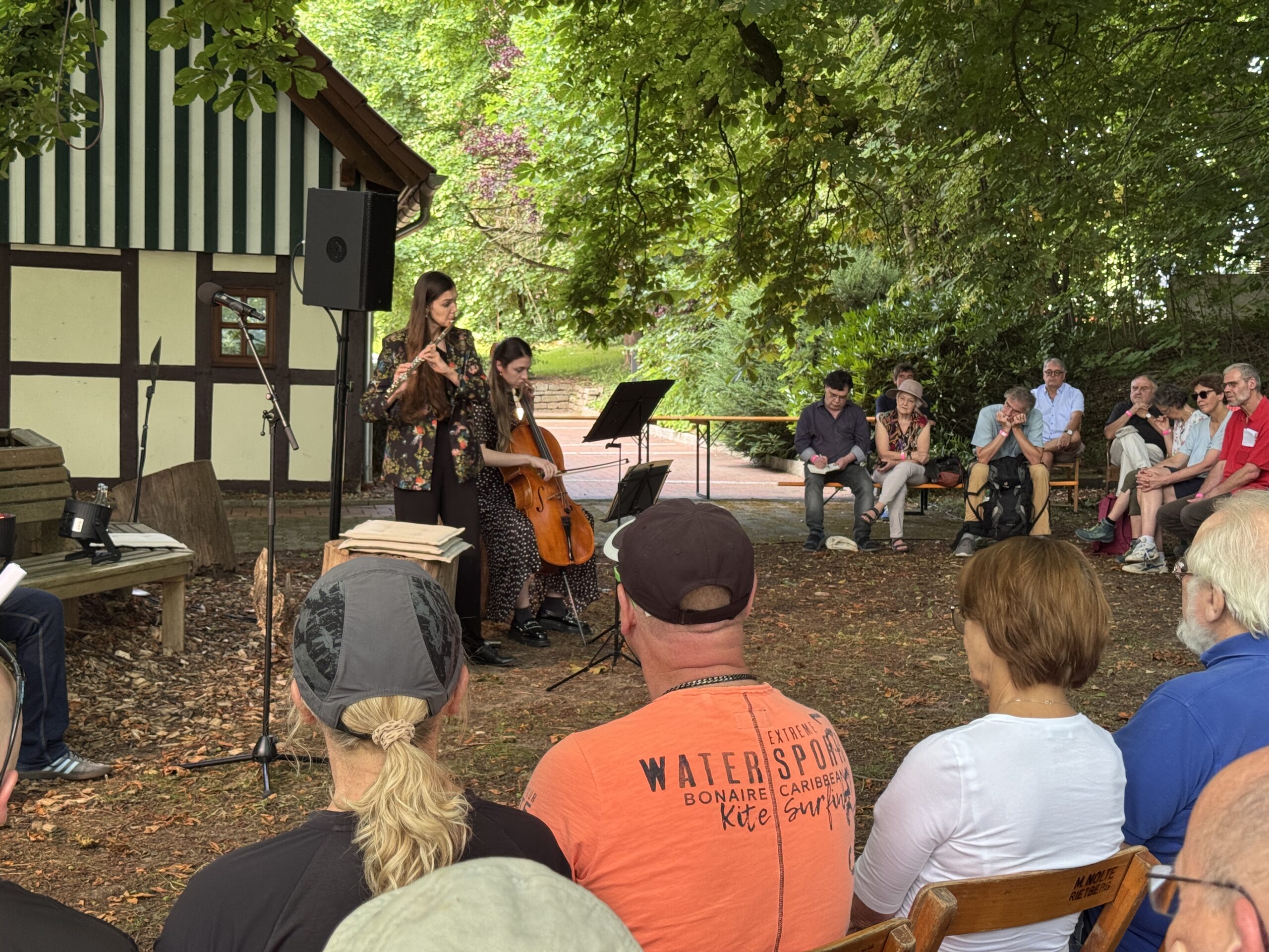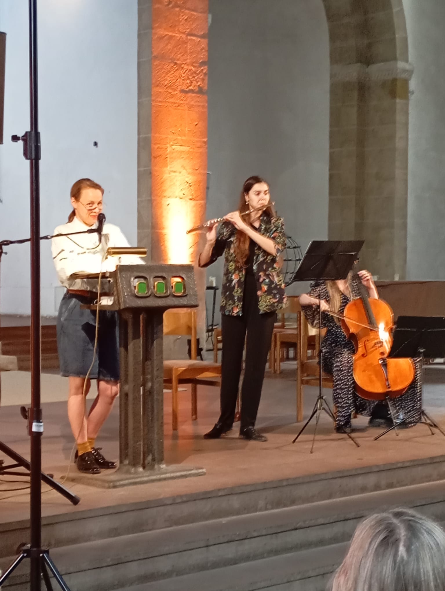 Musikalisch begleiteten Cellistin Anastasia Tcaregorodtceva und Querflötistin Karina Skrzypczak die Etappen. Kein Konzert im klassischen Sinne, sondern musikalische Miniaturen, die den Texten Raum ließen – und manchmal gerade durch ihre Zurückhaltung wirkten.